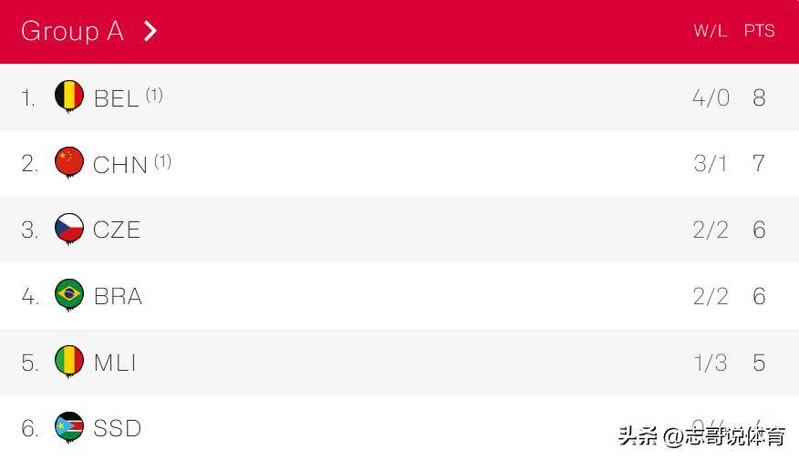 四轮过后,这个小组的最新积分榜,比利时队全胜领跑,中国队3胜1负也提前出线。